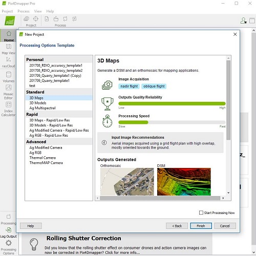 Pix4D SA (Šveicarija) kompanijos 3D programinė įranga Pix4D Mapper yra pilnai automatizuota fotogrametrijos programa skiriama generuoti taškų masyvus, ortofotografinius žemėlapius, DSM paviršiaus ir 3D Mesh modelius tiesiog iš fotonuotraukų sudarytų praktiškai bet kokio tipo bepiločio drono pagalba. Pasižymi aukštu duomenų apdorojimo greičiu, užtikrinant tikslius rezultatus. Pix4D duomenis apdoroja automatizuotais etapais, kurie sudėlioti logiška seka, draugiškoje Vartotojui aplinkoje. Programinė įranga leidžia filtruoti ir klasifikuoti taškų masyvus. Klasifikavimas atliekamas pagal žemės paviršių, kelius, aukštą augmeniją, pastatus ir infrastruktūros objektus. Patogioje vartotojo sąsajoje atliksite įvairius matavimus ir skaičiavimus. Tūrio skaičiavimui galima nurodyti įvairią referencinę ribą: žemiausią, aukščiausią taškus, plokštumą ar vieną aukščio tašką, taipogi įkelti .shp poligoną apibrėžiant tūrių skaičiavimo ribas.