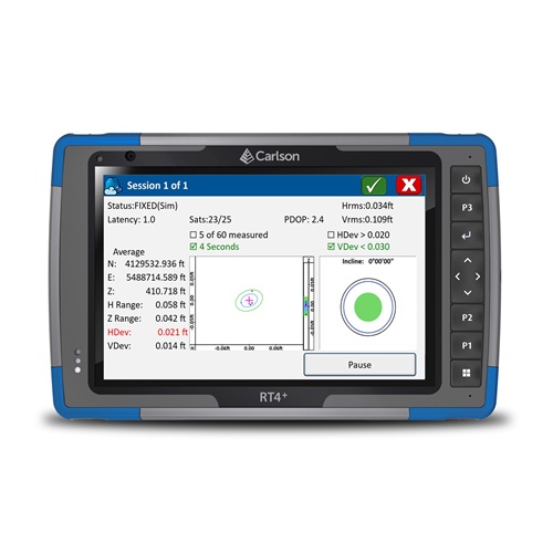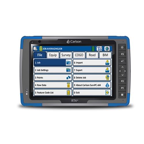 Sukurta ir pagaminta JAV! Kompanijos Carlson RT4+ planšetinis lauko kompiuteris skirtas Profesionaliai rinkai ir valdyti GNSS imtuvus, elektroninius tacheometrus, 3D skenerius ir GIS darbams atlikti. Pasižymi aukščiausiu atsparumu vandens ir dulkių poveikiui, pagal tarptautinę normą IP68, todėl juo galima dirbti net esant sudėtingiausioms aplinkos sąlygomis. Lauko kompiuteris turi 7″ (178 mm) spalvotą, liečiamą ir saulės šviesoje ypatingai gerai skaitomą ekraną, skaitmeninę 13Mpx kamerą, integruotą 4G LTE modemą ir belaidį Wi-Fi 6 (802.11 ax), 2.4 GHz and 5 GHz Wi-Fi 6E ryšį.