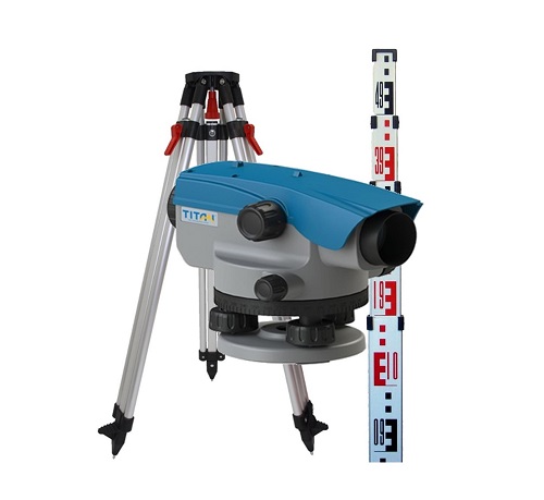 Komplekte: Optinis nivelyras Titan TAL32, plastikinis transportavimo dėklas, vartotojo instrukcija, patikrinimo ir sureguliavimo liudijimas, gamyklinė pakuotė, 5m. teleskopinė, niveliacinė matuoklė, Aliuminio stovas g-Nestle Light version.