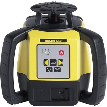 Rotacinis lazerinis nivelyras Leica Rugby 640 yra universalus prietaisas visiems lauko ir vidaus darbams, dirba horizantalioje ir vertikalioje plokštumoje, Scan 90 – skanavimo funkcija leidžia greitai perstumti spindulį į reikiamą pusę.