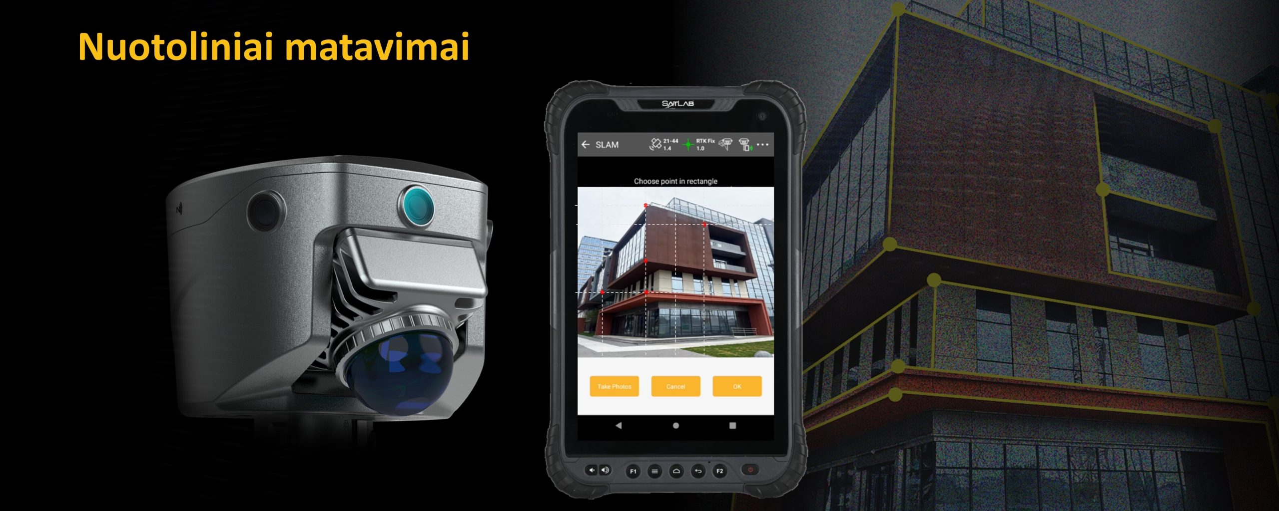 - Darbo režimai: RTK Rover/Base, SLAM-RTK, SLAM-Image Survey, SLAM